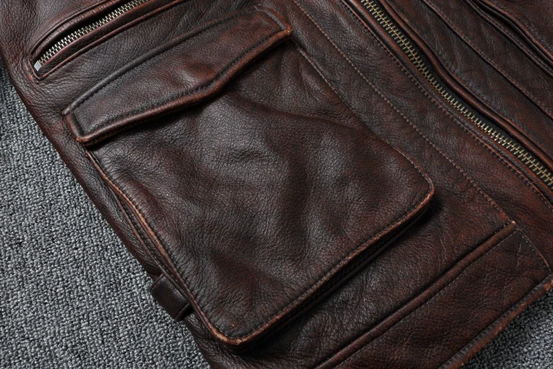 Vintage Red Brown Genuine Leather Jacket Men Soft Real Cowhide Black Winter Coat Biker Jackets Jaqueta Masculina De Couro