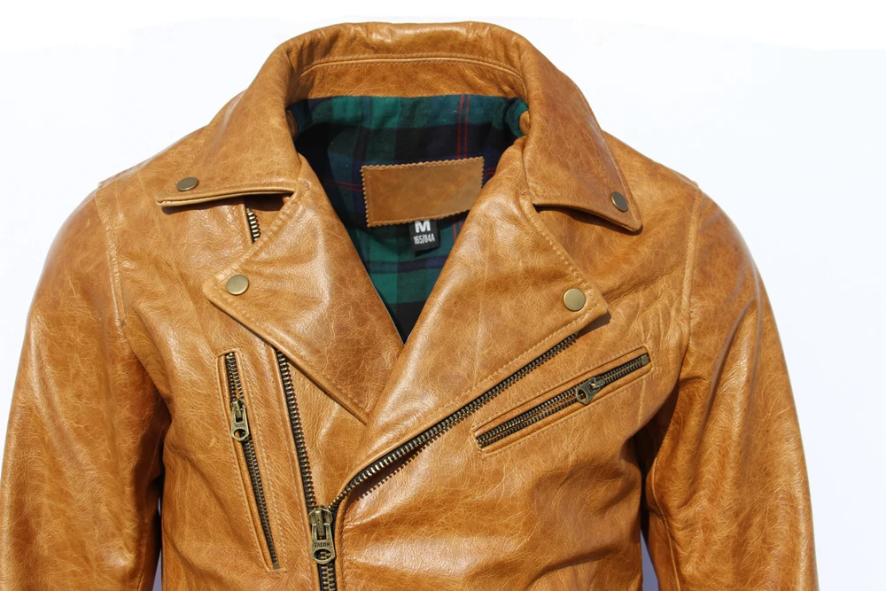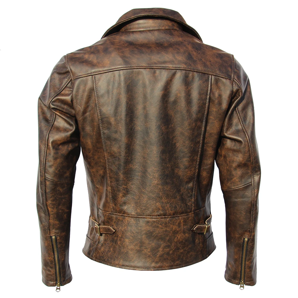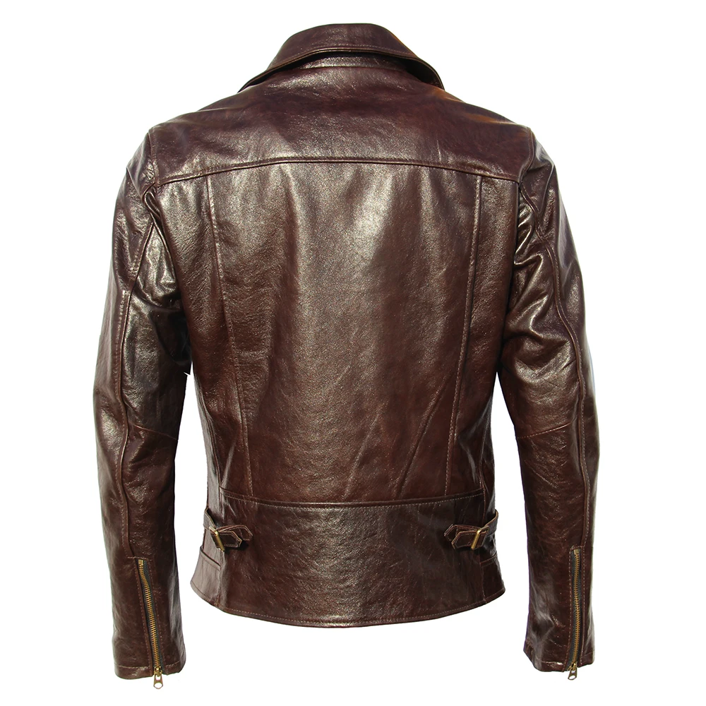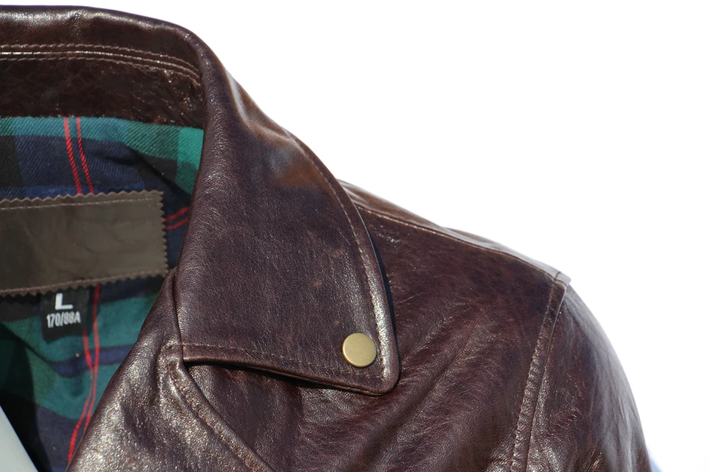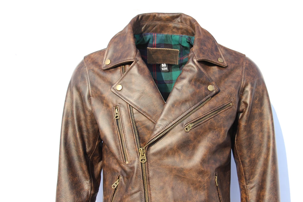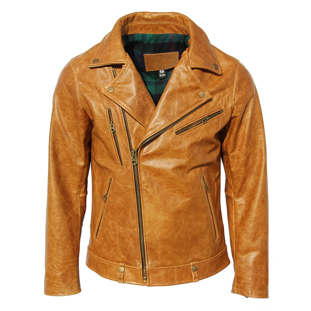 Men Genuine Leather Jacket Oil Waxed Cowhide Coat Soft Burgundy Natural Sheepskin Biker Style Male Clothing Spring Autumn M003