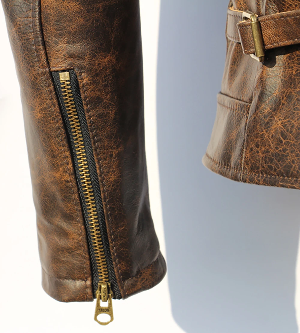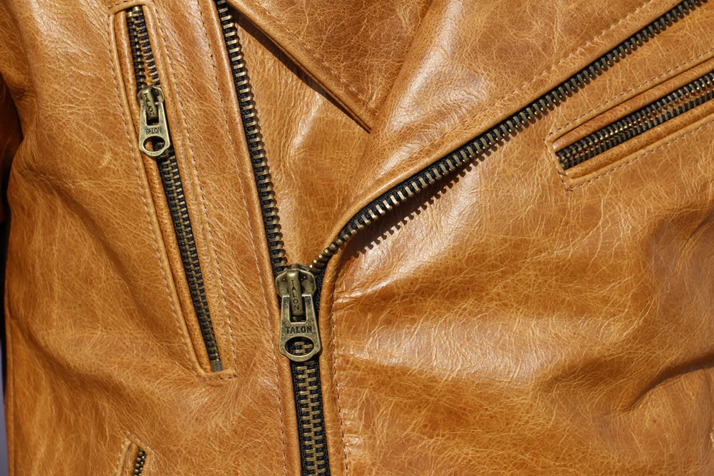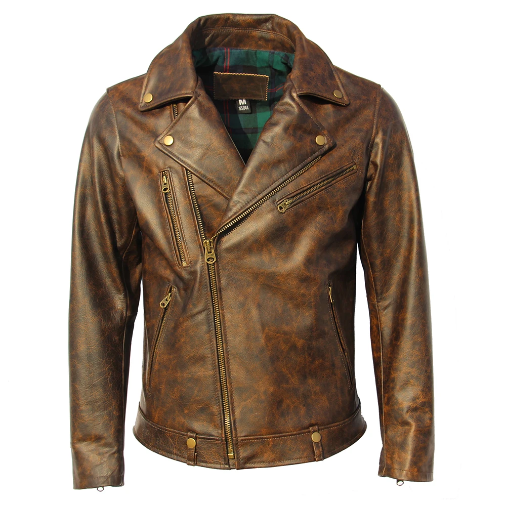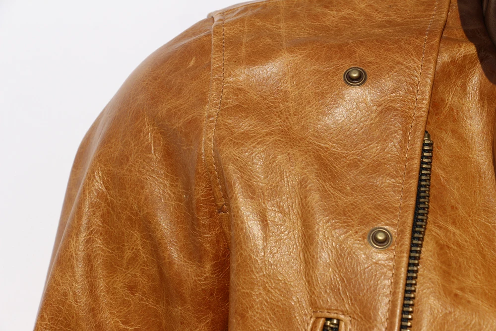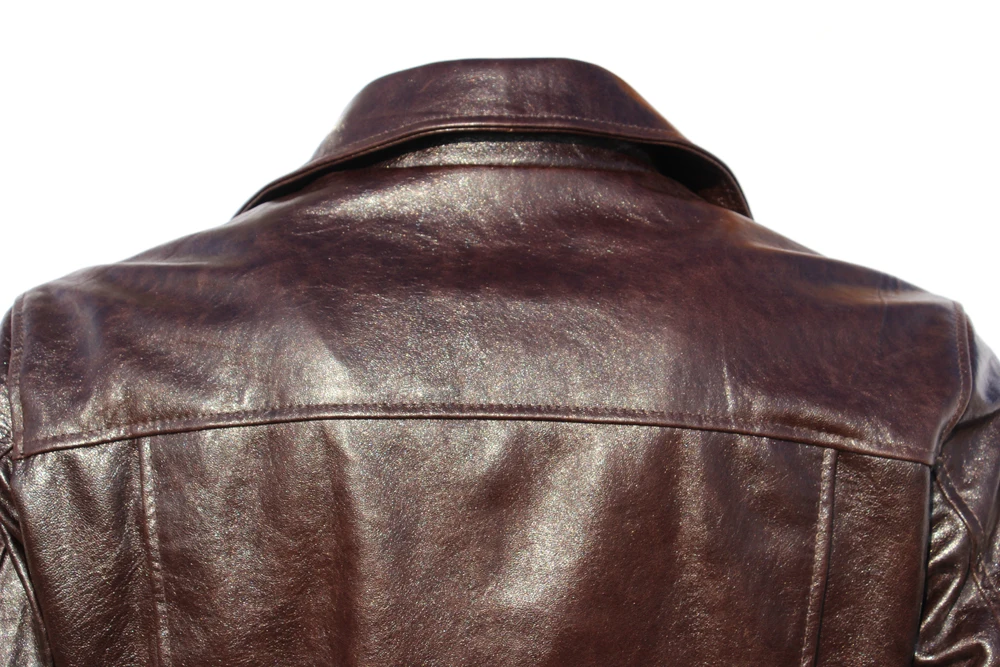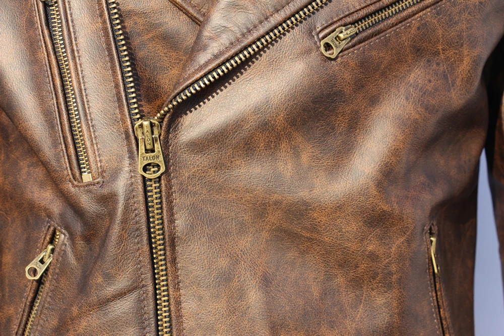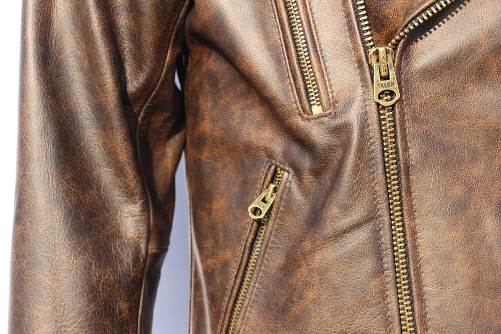 Men Genuine Leather Jacket Oil Waxed Cowhide Coat Soft Burgundy Natural Sheepskin Biker Style Male Clothing Spring Autumn M003