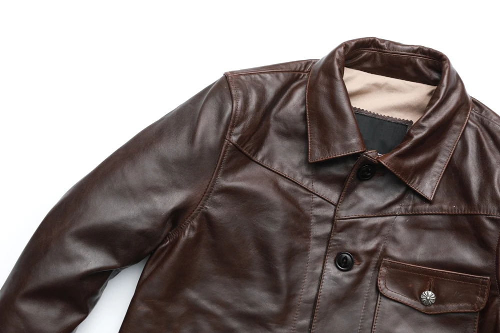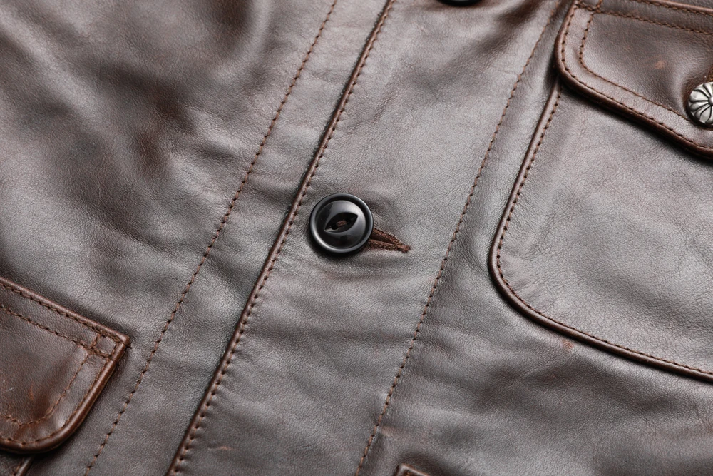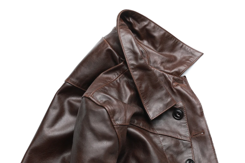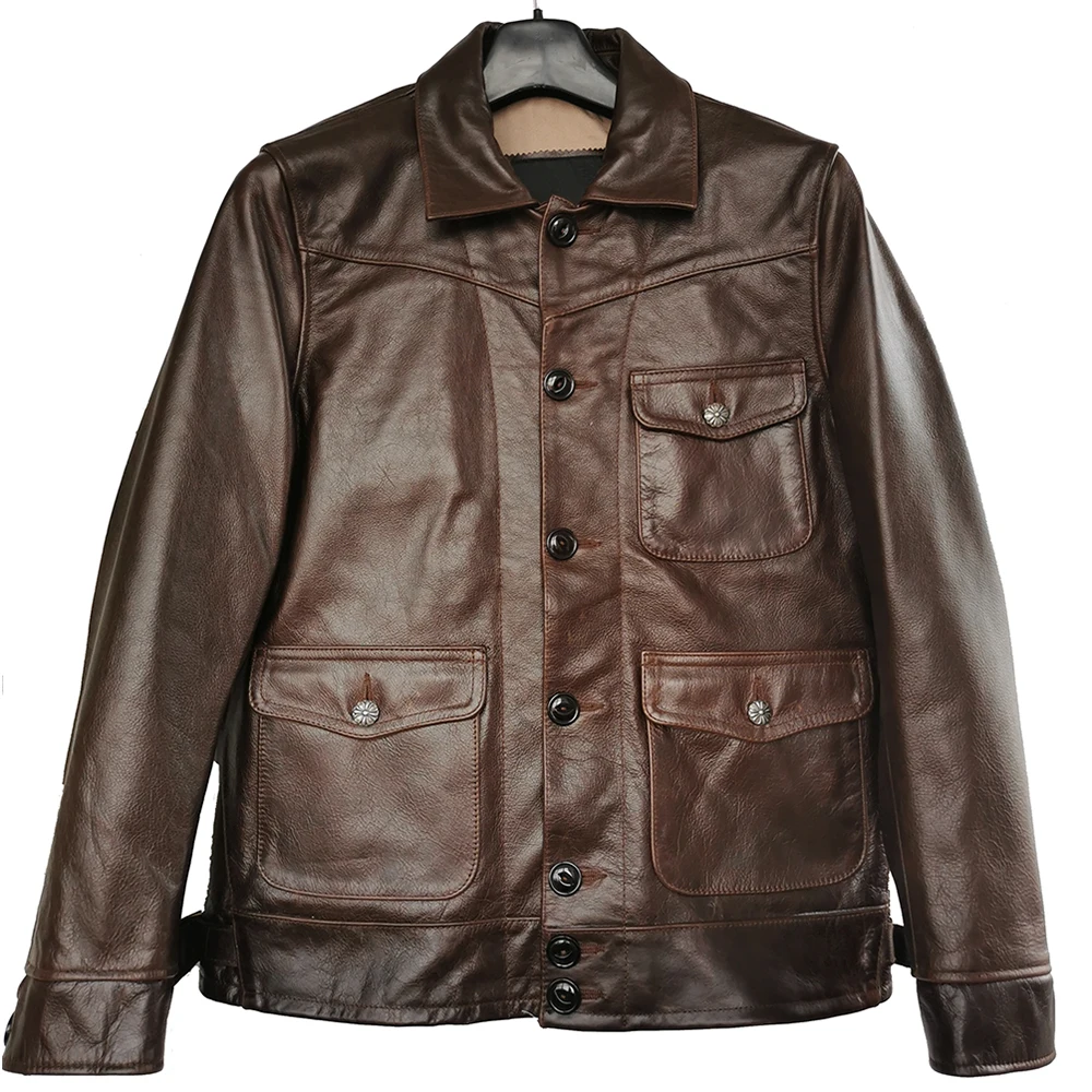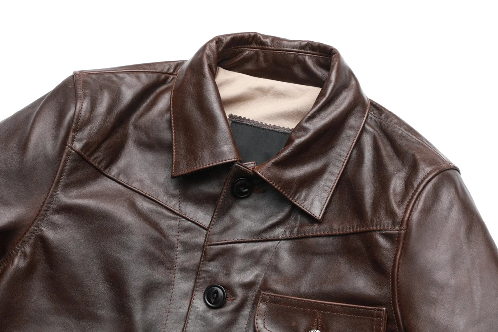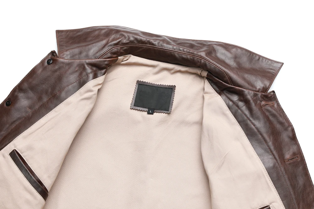 Men Leather Jacket Thick Turn Down Collar Dark Brown Solf Oil Wax Cowhide Skin Jacket Men Winter Coat Asian Size M-3XL M505