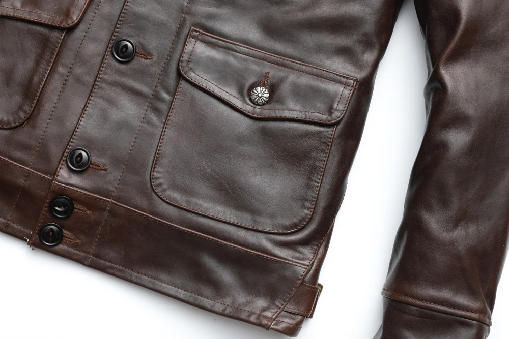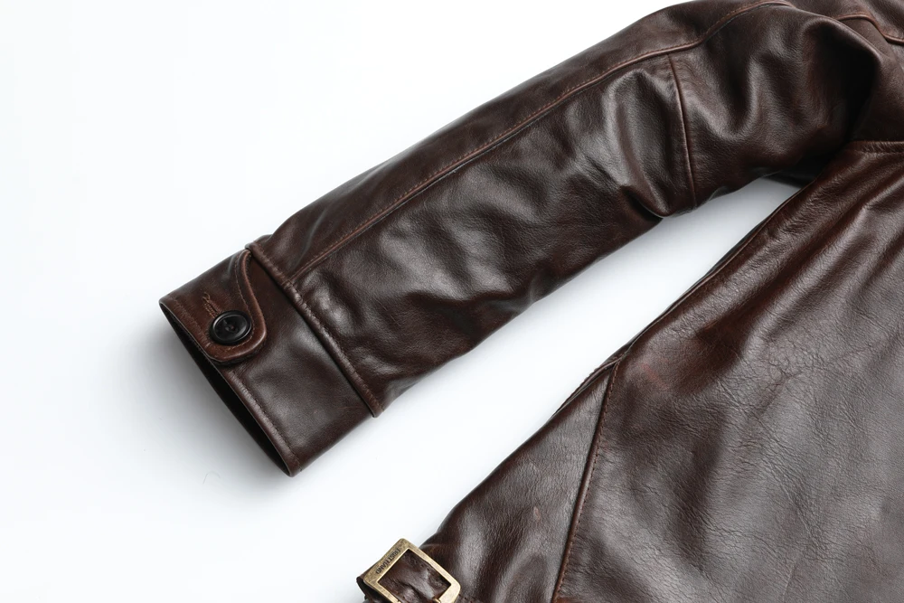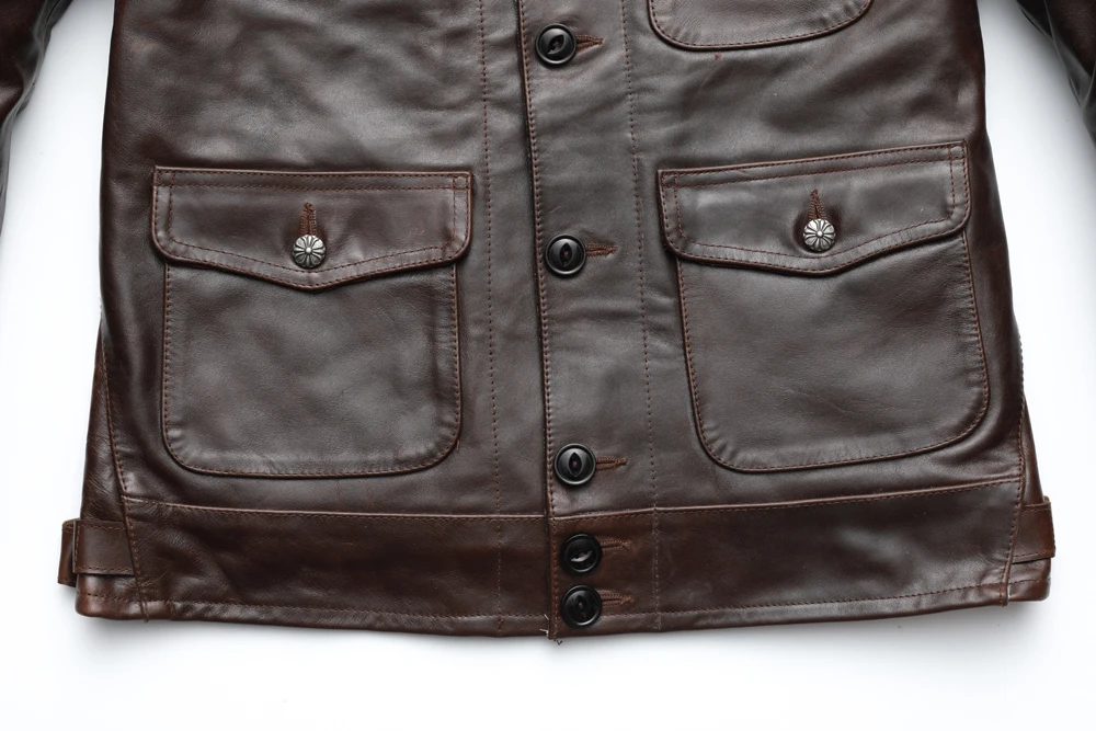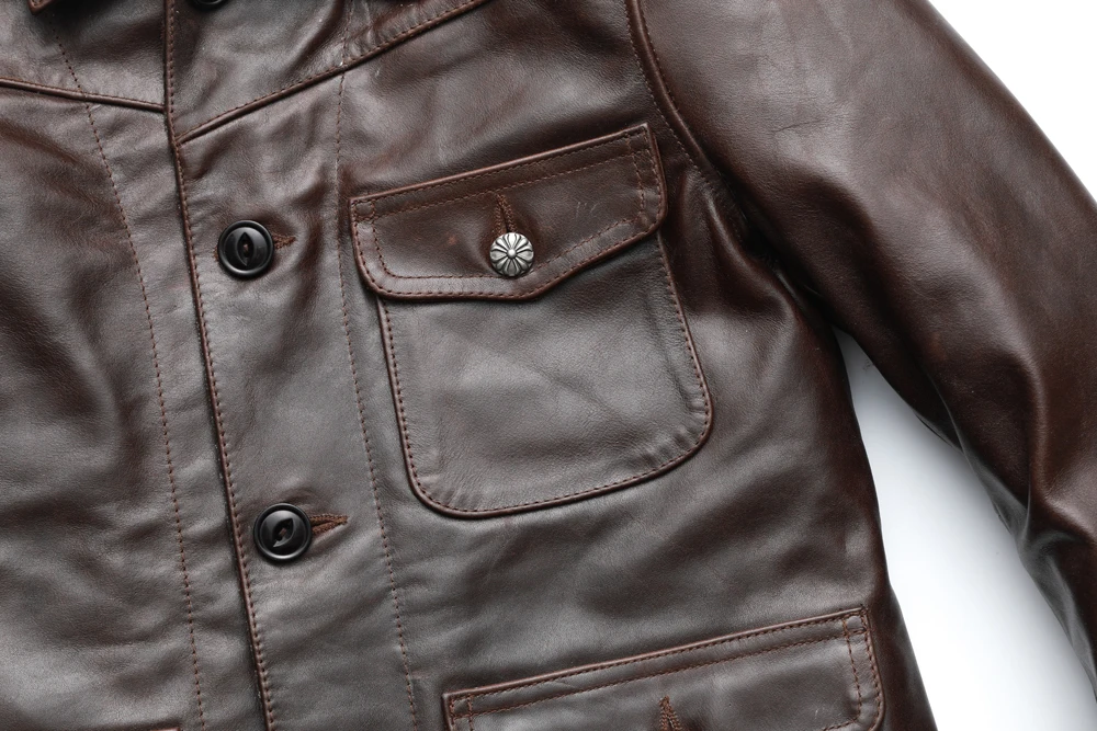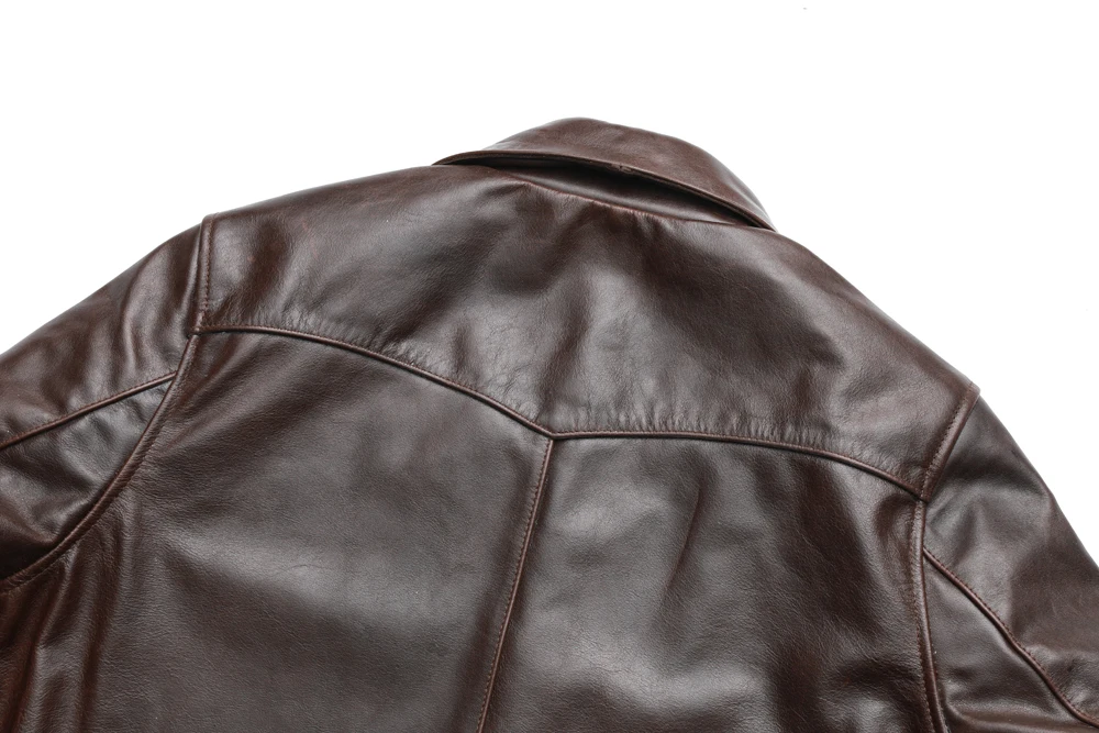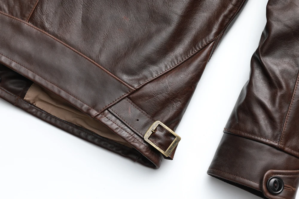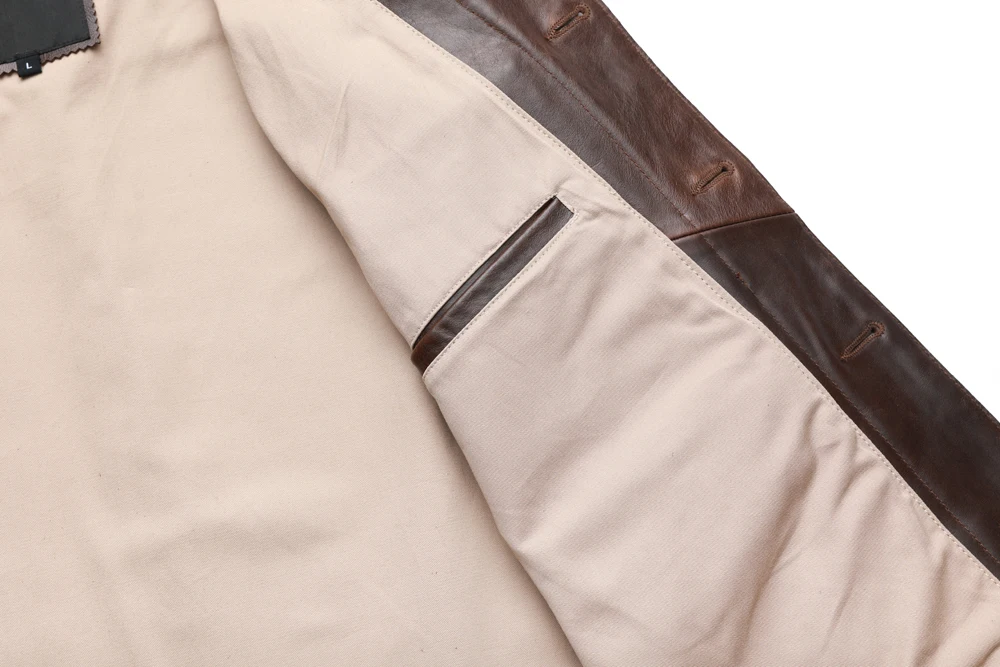 Men Leather Jacket Thick Turn Down Collar Dark Brown Solf Oil Wax Cowhide Skin Jacket Men Winter Coat Asian Size M-3XL M505