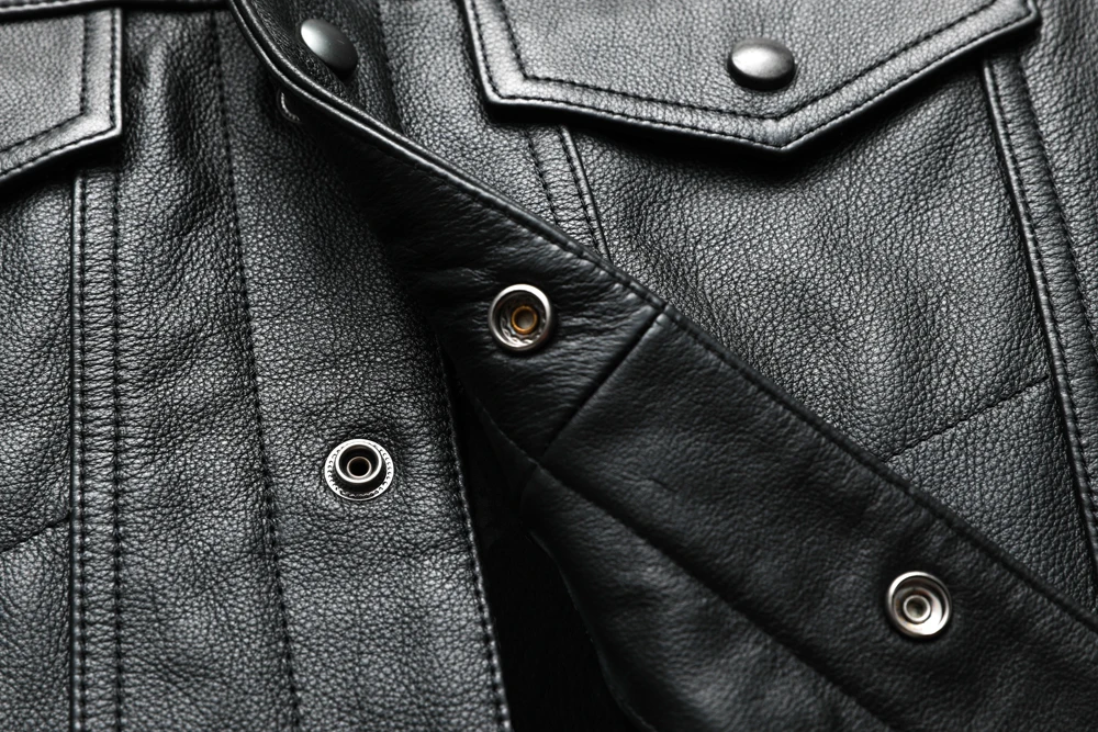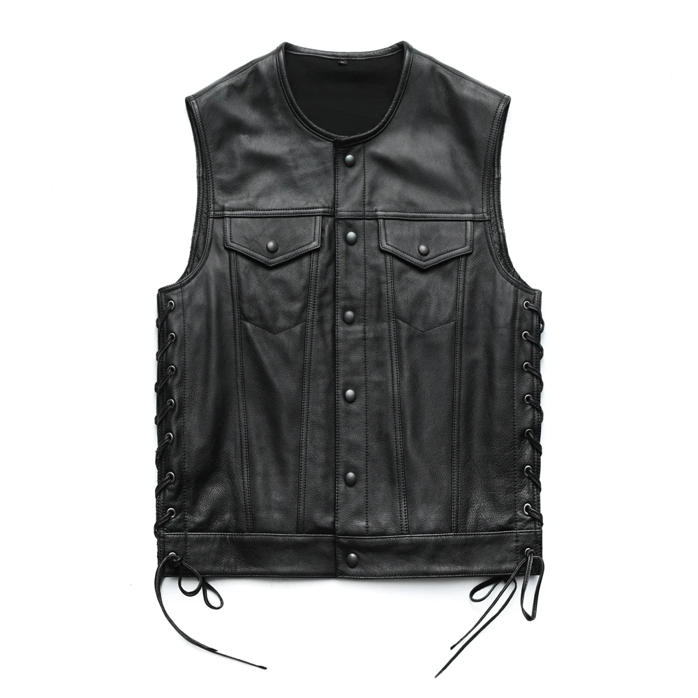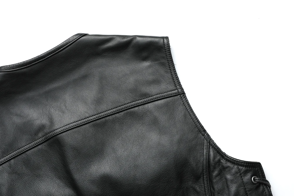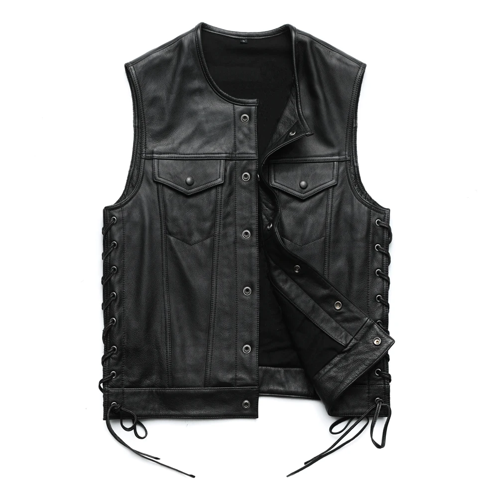 Men Leather Vest 100% Cowhide Motorcycle Vest Biker Leather Vests Moto Leather Waistcoat Asian Size M-5XL M435
