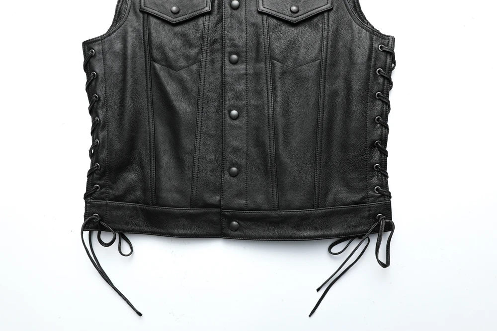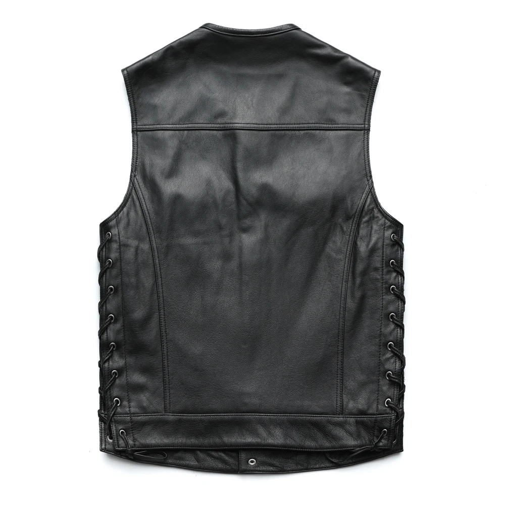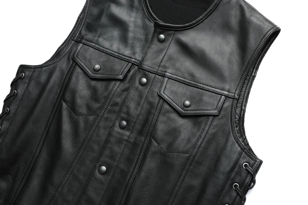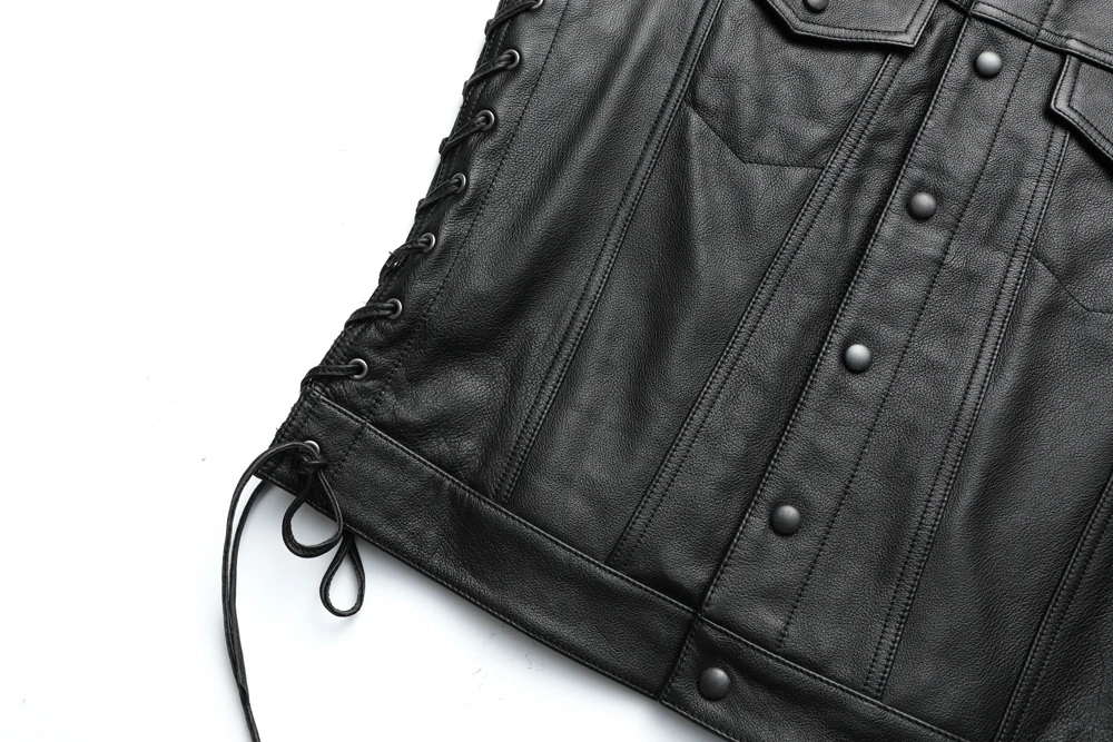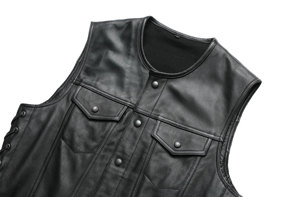 Men Leather Vest 100% Cowhide Motorcycle Vest Biker Leather Vests Moto Leather Waistcoat Asian Size M-5XL M435