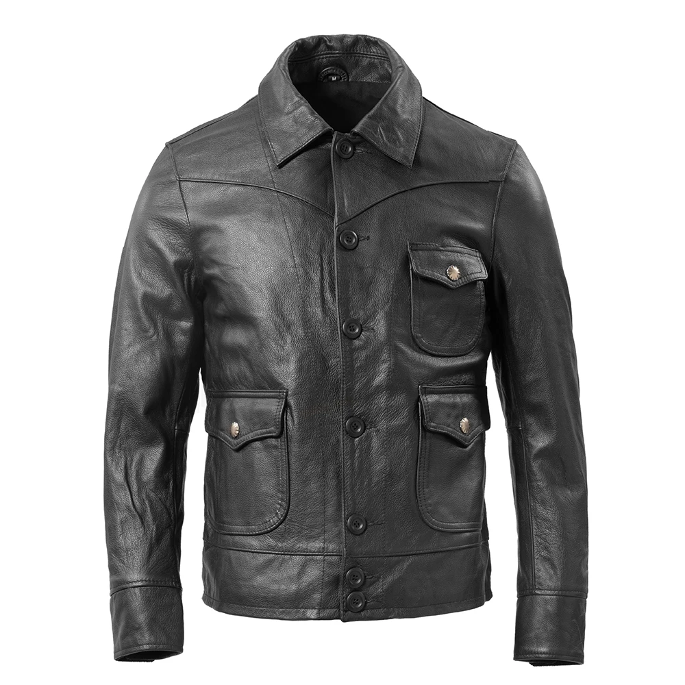 Men's Leather Jacket 100% Natural Cowhide Men Genuine Leather Coat Bomber Jackets Man Clothing Autumn Asian Size M266