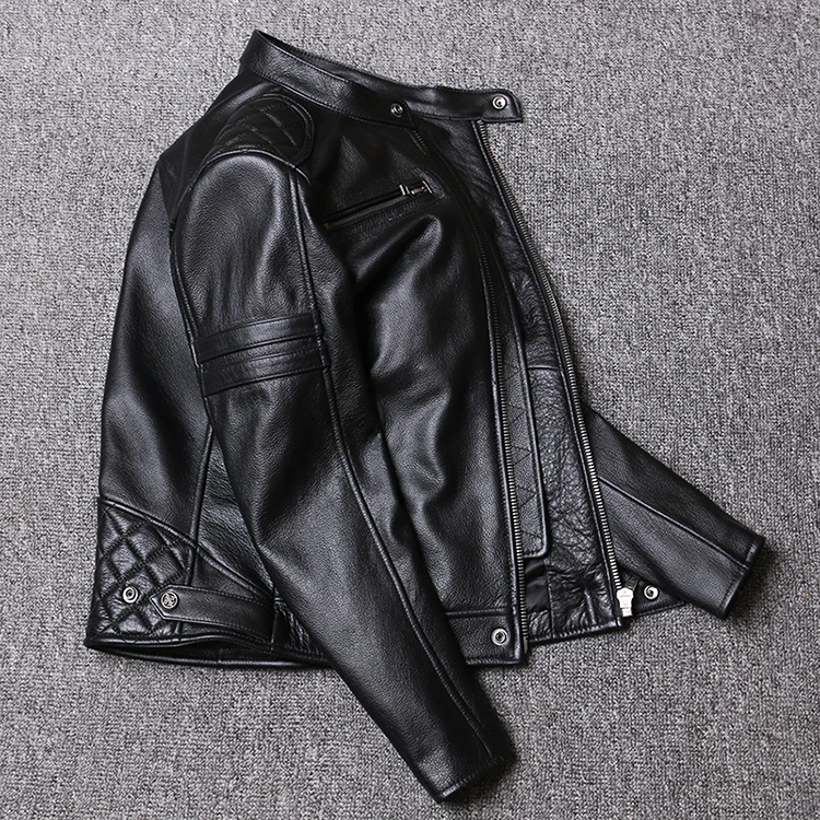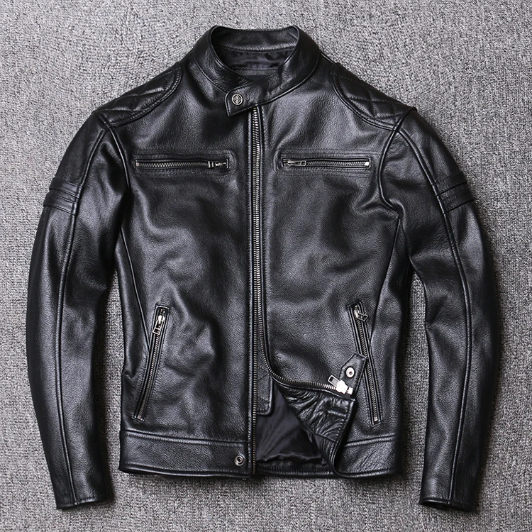 New Genuine Leather Jacket Men Coat Cowhide Slim Fashion Biker Motorcycle Jacket Clothing Real Calf Skin Leather Jacket Men