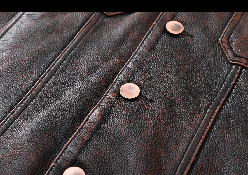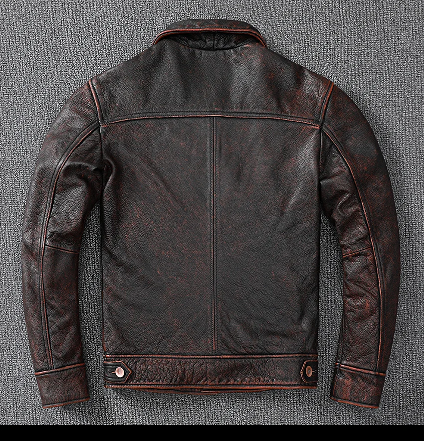 New Vintage Brown Workwear Style Cowboy Genuine Leather Jacket Natural Cowhide Coat Men's Stone Mill Old Style Clothes