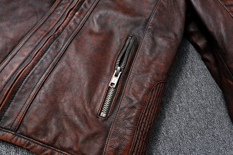 Real Cow Leather Jacket Men Motorcycle Jackets Genuine Cowhide Leather Vintage Men's Leather Coat Biker Clothing
