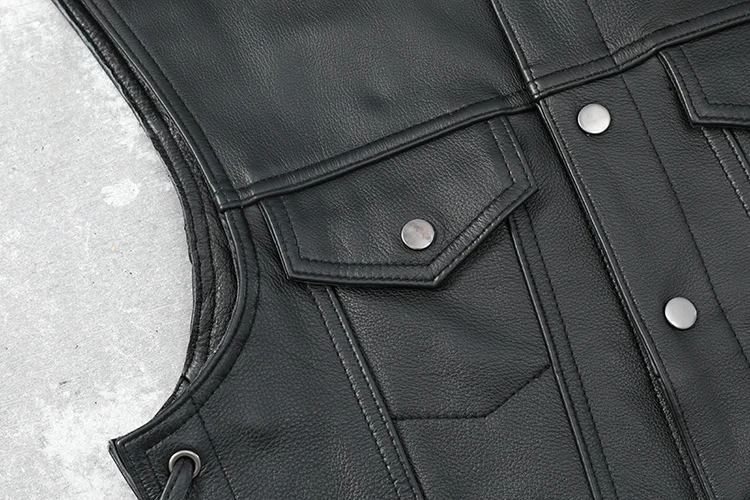 Soft Thin Cowhide Genuine Leather Vest for Men Sleeveless Jacket V-Neck Motorcycle Biker Waistcoat for Riding