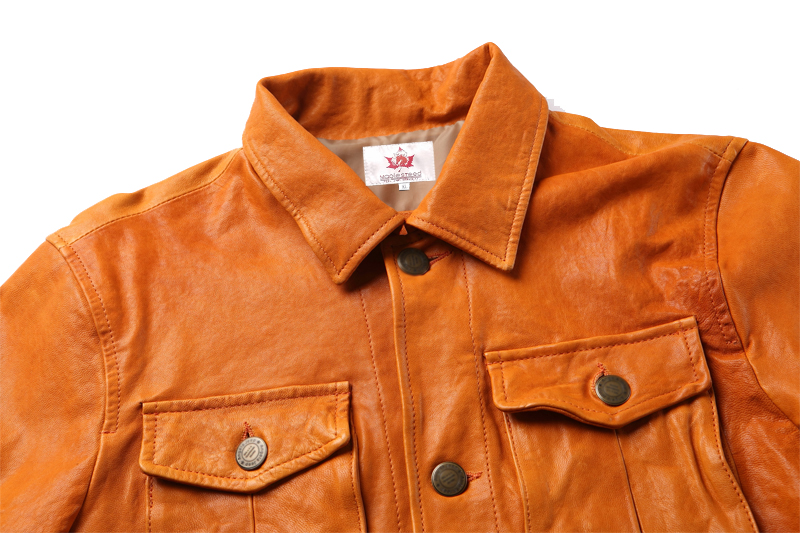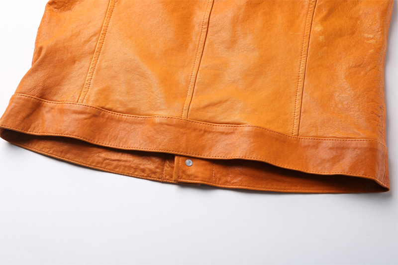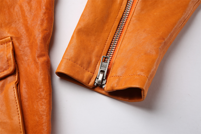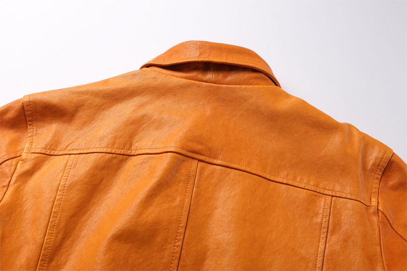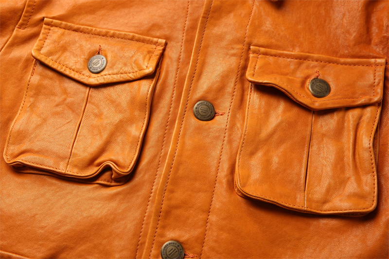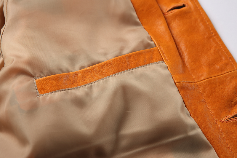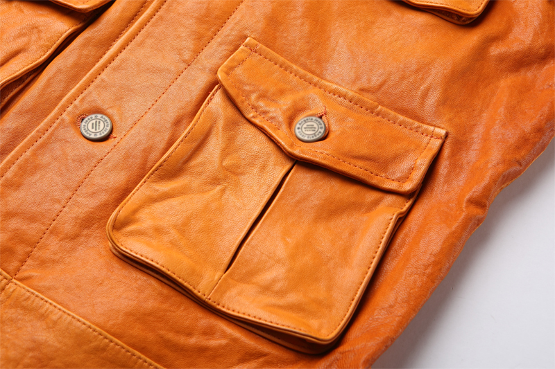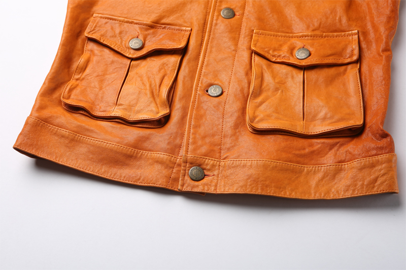 Fashion Genuine Leather Jacket Men Leather Coat Vegetable Tanned Matte Goatskin Pockets Yellow Male Leather Coat Autumn M158