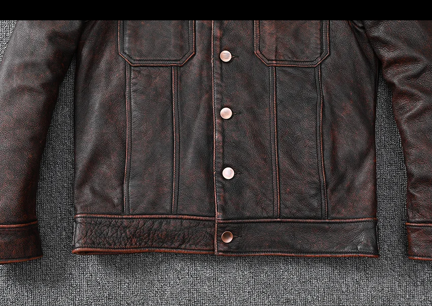 New Vintage Brown Workwear Style Cowboy Genuine Leather Jacket Natural Cowhide Coat Men's Stone Mill Old Style Clothes
